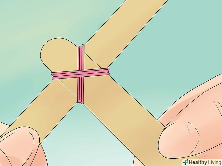 Зробіть одну купку з паличок. це зробить точку опори вашої катапульти. Складіть 5 паличок і закріпіть гумками з обох сторін.