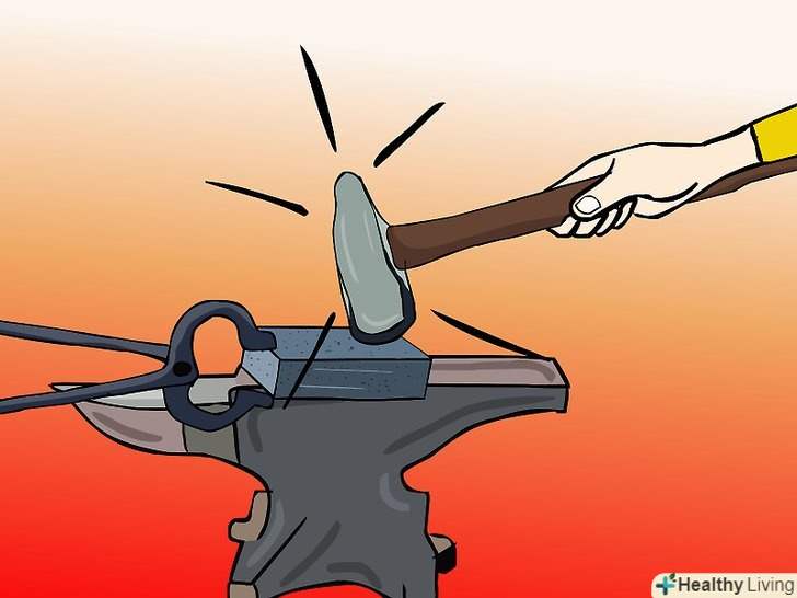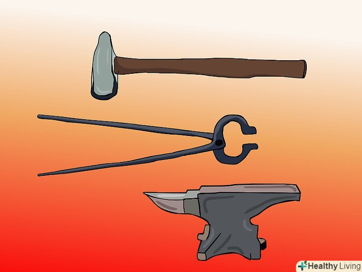 Зберіть інструменти. Кувалду можете знайти на дворових розпродажах, в антикварних магазинах, або звичайний молоток з круглим бойком з місцевого будівельного магазину також підійде, поки його поверхня гладка і на ній немає нерівностей і борозенок. Якщо на молотку є нерівності, необхідно їх прибрати, відплолірувати. На даний момент вам необхідна буде одна кувалда, щипці або плоскогубці, які ви будете використовувати як кліщі. Якщо ви щасливий володар ковадла, тим краще, але якщо у вас її ще немає, секція рейки або будь-який інший великий, важкий шматок заліза з гладкою поверхнею підійде (їх називають "предмети у формі ковадла").