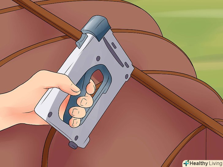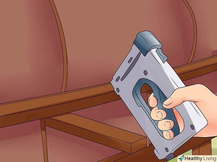 Продовжуйте прикріплювати дошки зі сторін і закріплювати їх скобами. спочатку ви будете закріплювати Нижні дошки, а потім верхні, які будуть формувати дно каное.- Якщо крім скоб вам потрібно більше фіксації, використовуйте кріплення.