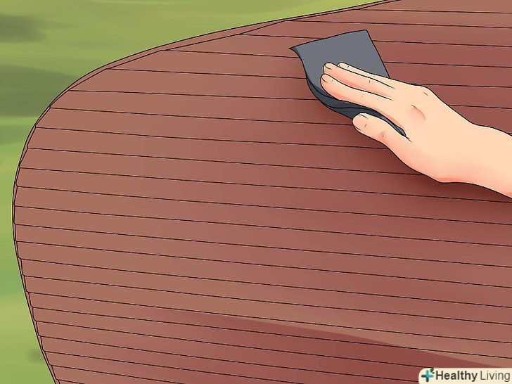 Добре відшліфуйте каное. протріть всю поверхню каное грубим наждачним папером. Протирайте уздовж волокон дерева. Обов'язково витріть каное від тирси, перед тим як покривати його лаком.