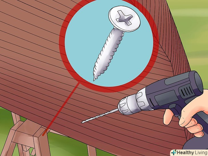 Прикріпіть передній і задній кінці. можливо, вони будуть йти в комплекті. В іншому випадку вам знадобиться вирізати 2 деталі у формі чверті кола, які будуть тримати форму на кінцях каное. [3] прикріпіть їх до столу також за допомогою саморізів. Вони повинні розташовуватися ідеально рівно.- Якщо вам потрібно їх вирізати, прикладіть трафарети до листа фанери і виріжте кінці інструментом для різання.