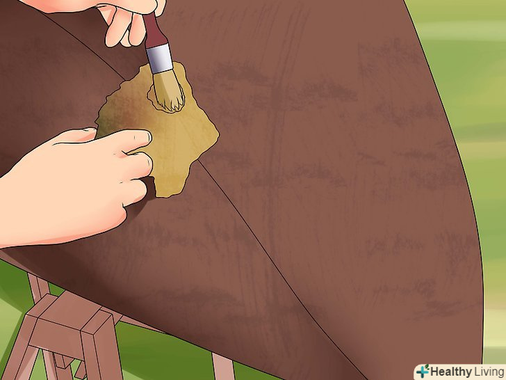 Покрийте каное лаком. для зміцнення і лакування каное з тонких дощок часто використовується склопластик, епоксидна смола і лак. Дотримуйтесь інструкції на упаковці щодо способу застосування, часу, за який засіб повинен висохнути, і зверніть увагу на попередження.- Перш ніж спускати каное на воду, почекайте, поки смола або лак повністю висохне.