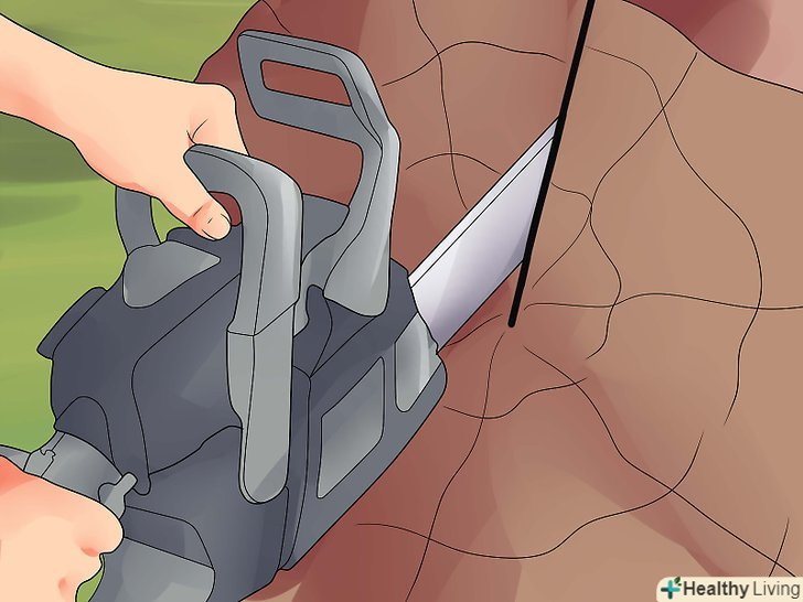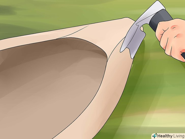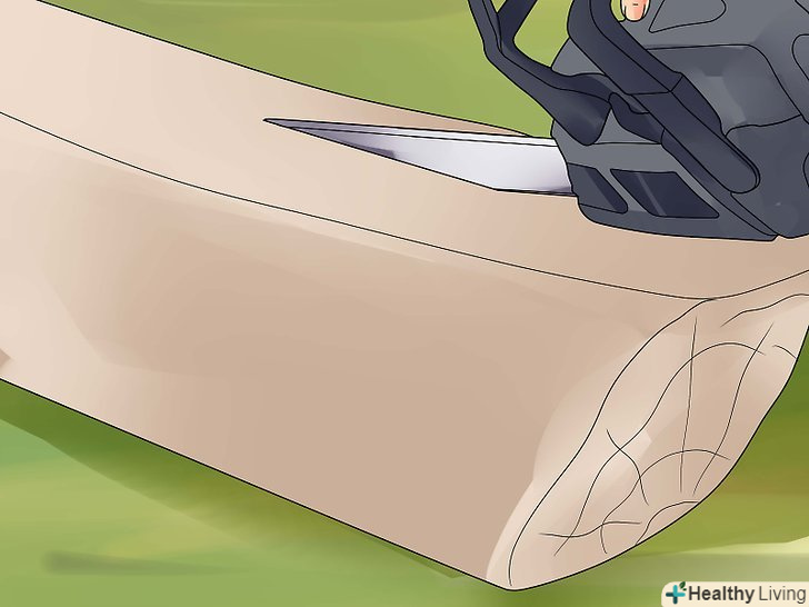 Зробіть плоске дно для каное. виріжте рівну горизонтальну лінію по всій довжині колоди з усіх боків. Потім по цій лінії розріжте його ланцюговою пилкою, теслом або сокирою. [7]