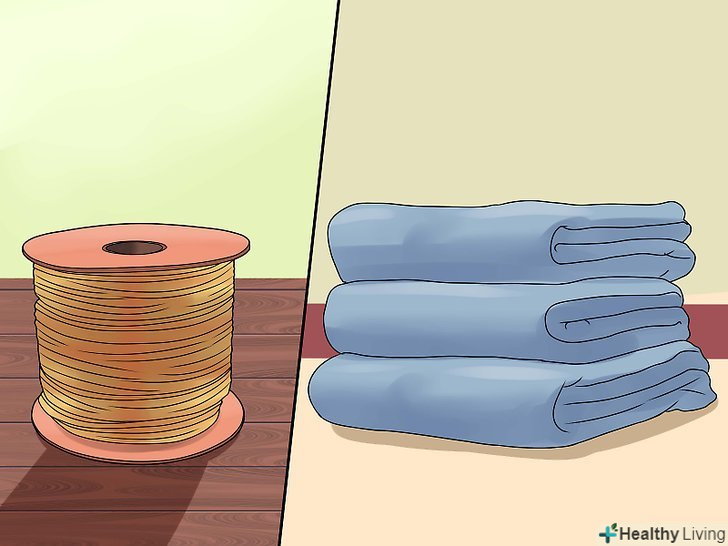 Зберіть необхідні матеріали. вам знадобиться мотузка, мотузка або широка гумова стрічка, щоб скріпити жердини разом. Також необхідні кілька простирадл або ковдр для стін майбутнього вігвама і прищіпки або затискачі для паперу.