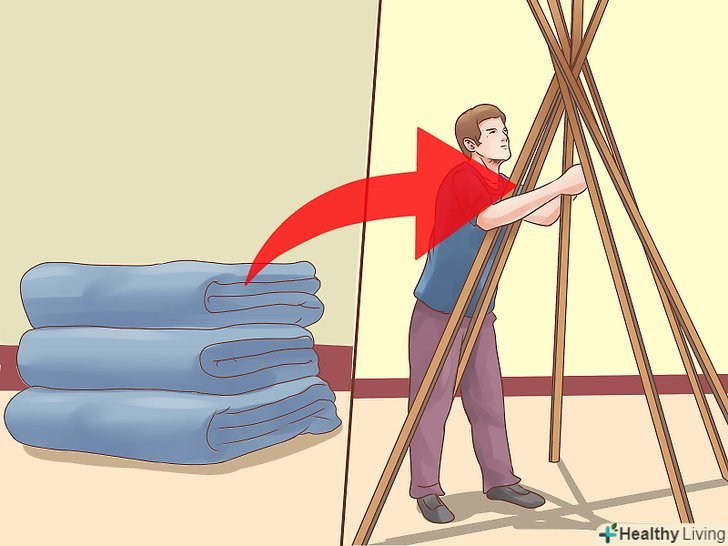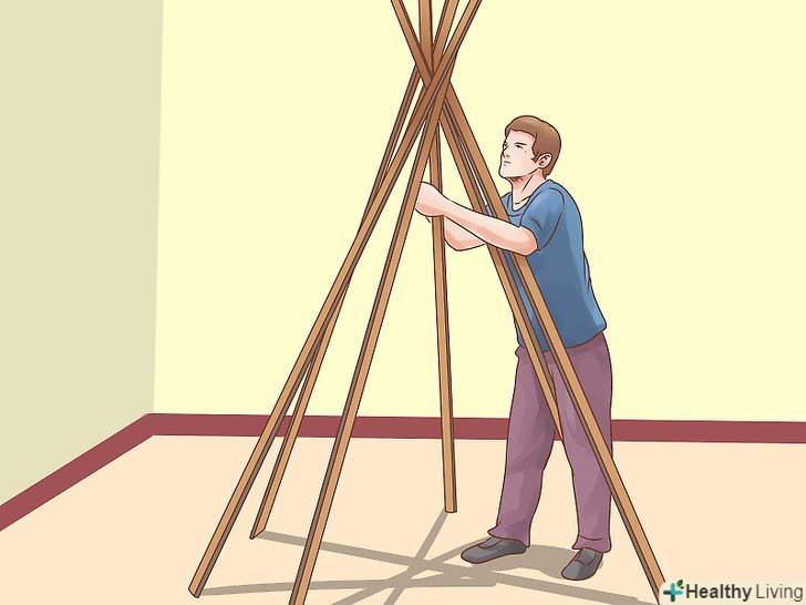 Запасіться довгими жердинами або палицями. якщо у вас в будинку є задній дворик, можна дістати палиці там. Вам знадобиться 5-7 достатньо прямих і жорстких палиць довжиною не менше півтора метра (5 футів) кожна. Якщо у вас немає заднього двору, де можна було б набрати палиць, попросіть батьків придбати вам кілька довгих жердин (а може, карнизів для штор або ручок для мітли) в магазині господарських товарів.