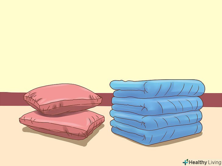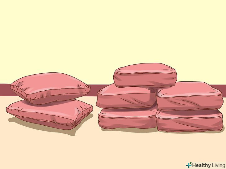 Зберіть якомога більше подушок різних розмірів і форм. можете почати з подушок у своїй спальній кімнаті. Запитайте у батьків дозволу використовувати і інші подушки з комодів, диванні подушки і так далі.