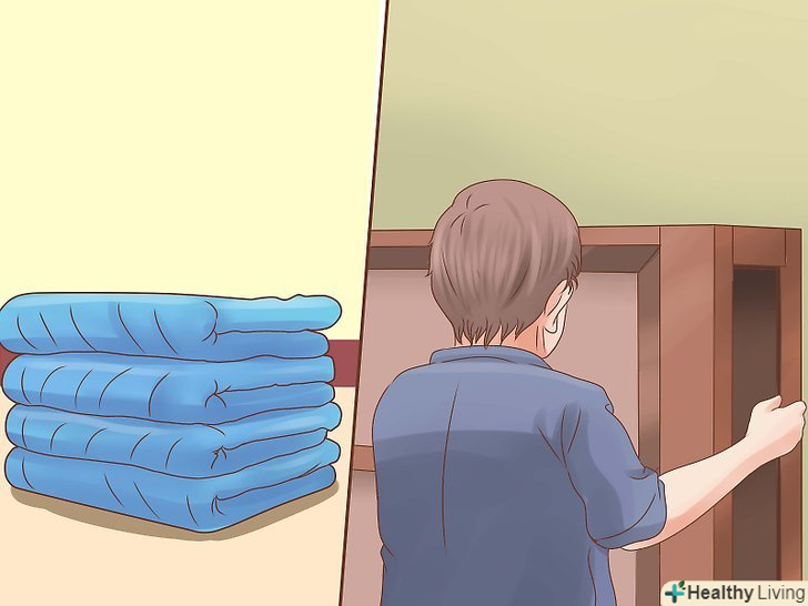 - Можете також затиснути краю простирадло між меблями і стіною. Просто просуньте простирадло між чимось масивним, наприклад, передньою спинкою ліжка і стіною, а потім присуньте меблі (ліжко) впритул до стіни.