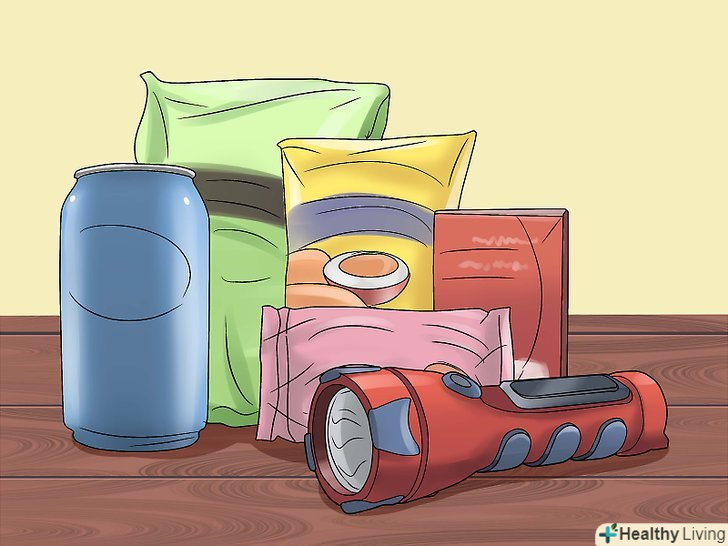 Забезпечте форт запасами. у фортах необхідні їстівні припаси, так що помістіть в своїй будові легкі закуски, печиво і напої. Якщо ви збираєтеся користуватися фортом в нічний час, вам, можливо, знадобиться ліхтарик або лампова гірлянда, яку можна прикріпити до стін. І звичайно, запасіться книгами та іграми, щоб не нудьгувати.- Ніколи не використовуйте свічки та інші джерела відкритого вогню всередині вашого форту! Постільні приналежності легко запалюються.