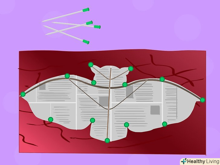 Коли ви переконалися, що аркуш паперу підходить за формою і розміром, закріпіть його за допомогою швейних шпильок, щоб використовувати в якості шаблону для вирізання аеродинамічного матеріалу.