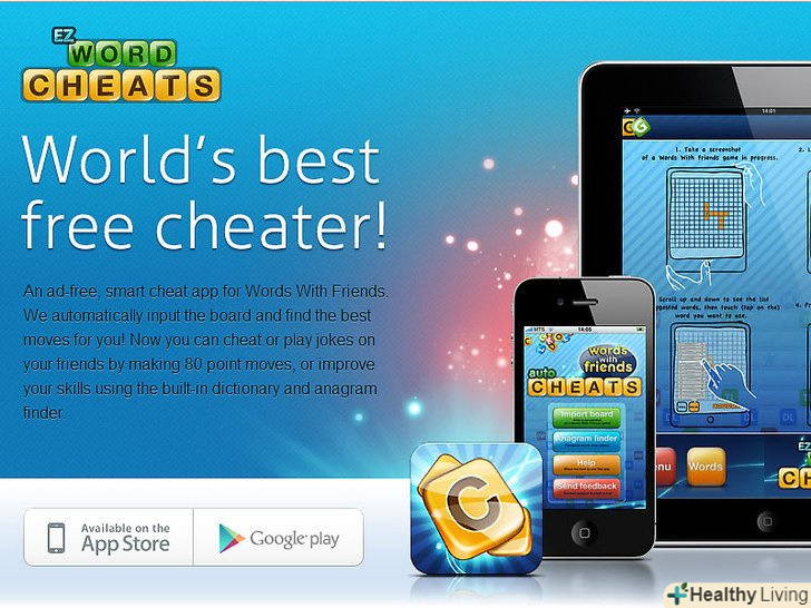 - Скачайте Додатки по обману на ваш телефон. доступні додатки для iPhone, iPod touch, iPad і Android, які підкажуть вам, куди ставити букви, щоб зробити ваш рахунок максимально високим. Ці програми працюють також, як і сайти, але вони більш зручні у використанні, так як ви можете перевіряти слова в процесі гри з вашого телефону.
