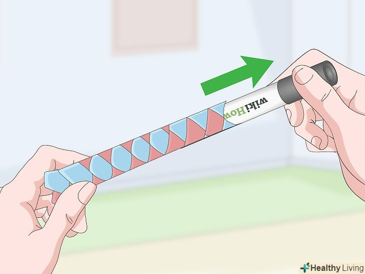 Дістаньте маркер з пастки для пальців. хитрість у використанні китайської пастки для пальців полягає в тому, щоб акуратно вийняти з неї палець (або маркер в даному випадку). Не смикайте маркер і не тягніть його занадто сильно. Якщо ви не дуже щільно сплели папір, можна просто розташувати пастку вертикально, щоб маркер сам вислизнув з неї.