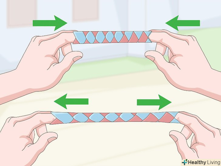 Протягніть в пастку обидва вказівних пальця і спробуйте витягнути їх. чим сильніше ви будете тягнути пальці, тим щільніше буде охоплювати їх пастка. Хитрість полягає в тому, щоб звести пальці разом, - в цьому випадку пастка стане ширше. Як тільки пастка розшириться, захопіть її великими пальцями і витягніть вказівні пальці.- Будьте обережні, щоб не сплющити пастку для пальців. Якщо на паперових смужках утворюються складки, вони не будуть ковзати один щодо одного, і пастка буде гірше діяти.