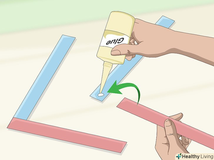 Склейте дві смужки паперу під прямим кутом. візьміть дві смужки різного кольору і складіть їх під прямим кутом у вигляді літери «Г». Склейте збігаються краю гарячим клеєм, клеєм ПВА або клеїть олівцем. Зачекайте, поки папір висохне. [3]- Виконайте це двічі для кожної пари паперових смужок.