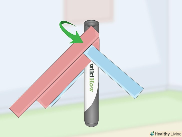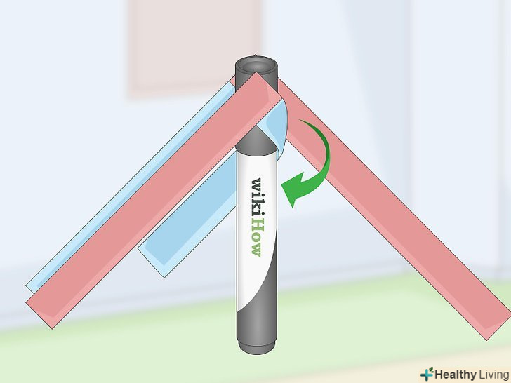 Приклейте другу пару смужок до іншої сторони маркера. поверніть маркер так, щоб вже приклеєні смужки виявилися знизу. Нанесіть ще одну краплю клею на бічну сторону маркера біля його краю і приклейте другу пару смужок. [6]- Простежте, щоб смужки розташовувалися паралельно один одному. Якщо подивитися на маркер збоку, він повинен нагадувати стрілку.