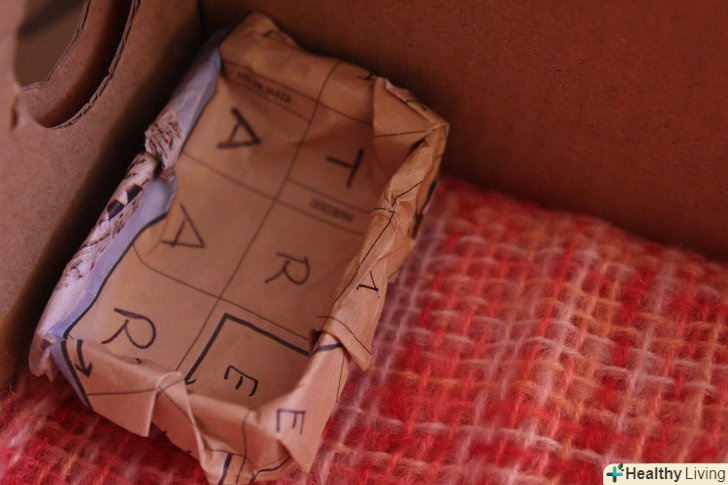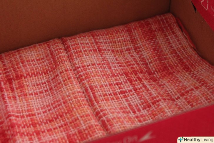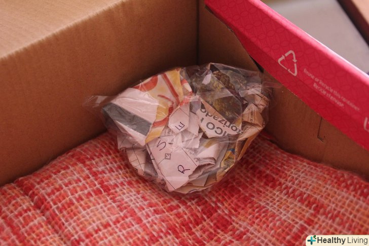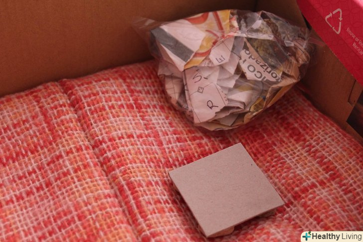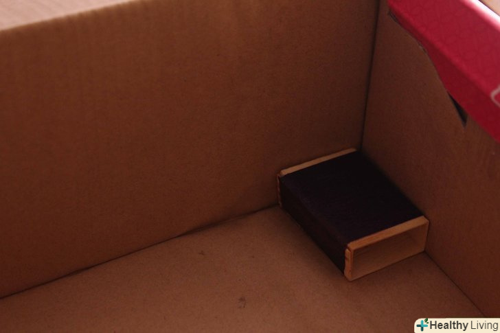Зніміть кришку і помістіть маленьку коробку (наприклад, сірникову коробку) в кутку великої коробки. заповніть її м'яким матеріалом, наприклад бавовною, повстю або іншою тканиною. Навіть шматки газети підійдуть.