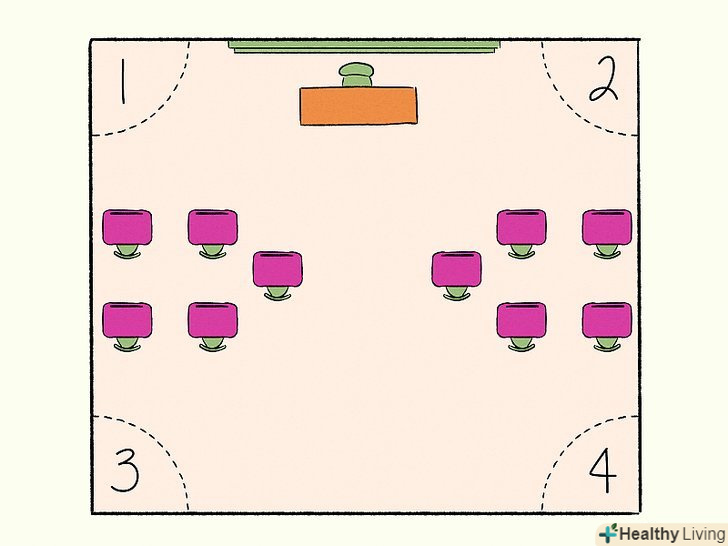 Пронумеруйте чотири кути кімнати. у кожному з кутів кімнати закріпіть аркуш паперу з номером: 1, 2, 3, 4.- Замість номерів ви можете відзначити кути різними кольорами або словами. Якщо ви вчитель, то спробуйте використовувати що-небудь пов'язане з темою уроку.
