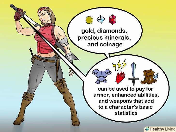 Не забудьте і про економічний аспект вашої гри! звичайно, економіка продумана далеко не у всіх рольових іграх, проте зазвичай персонажі все ж заробляють щось за перемогу над ворогами або виконання квестів. Отримані гроші можна витратити у неписів на нові предмети екіпіровки або на якісь послуги. [11]- Якщо видати персонажам занадто багато грошей, то можна порушити баланс гри. Не забувайте про це, опрацьовуючи економічний аспект гри. [12]