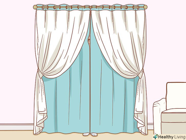 Зробіть крок за фіранки. Встаньте між вікном і шторами і насуньте їх на себе. Стійте прямо і тримайте руки з боків, щоб шукає вас людина не звернув увагу на підозрілі виступи за фіранкою. [8]- Дуже ймовірно, що з-під фіранки будуть стирчати ваші ноги, тому постарайтеся через деякий час перебратися в інше укриття.