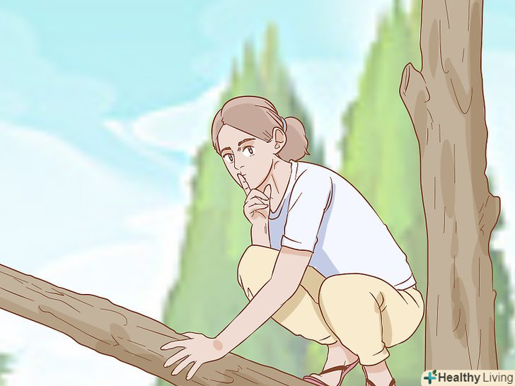 Залізьте на дерево. пошукайте дерева з густою кроною — вони стануть для вас найкращим укриттям. Так як на дереві ви опинитеся вище звичайного поля зору середньостатистичної людини, то ваш переслідувач, швидше за все, буде активно шукати вас на рівні землі в найбільш звичних укриттях. [10]- Якщо ви вирішили розміститися на одній з нижніх гілок крони, не базікайте ногами, щоб вас не помітили.