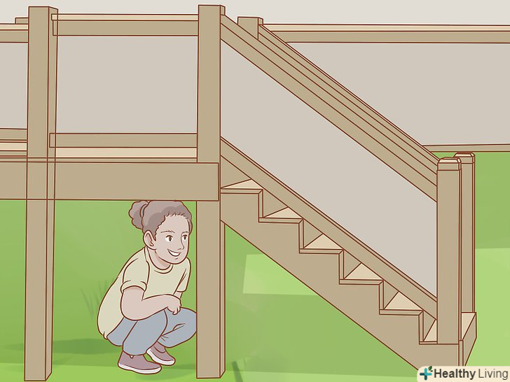Залізьте під ганок. у деяких приватних будинків під ганком є вільний простір, який нерідко використовується для зберігання будь-яких предметів. Спробуйте знайти спосіб забратися під ганок або під веранду того будинку, у дворі якого ви граєте. Можливо, там буде невелика дверцята або навіть просто діра, в яку можна буде протиснутися.- Остерігайтеся потенційно небезпечних істот. Темні вологі місця часто залучають змій, павуків, мишей та інших неприємних повзучих гадів. [11]