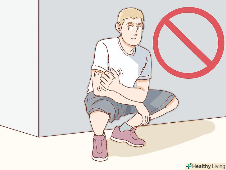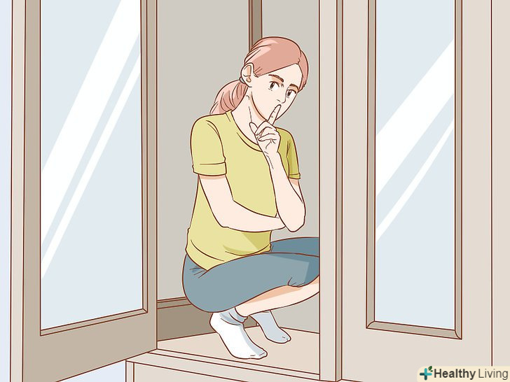 Сховайтеся за диваном. якщо ви почули, що та людина, зустрічі з яким ви хочете уникнути, ось-ось увійде в кімнату, пірніть за диван і присядьте навпочіпки, щоб сховатися. Можливо, людина просто окине кімнату швидким поглядом і вирішить, що там вас немає. Головне, щоб диван, за яким ви ховаєтеся, був звернений обличчям до вхідних дверей і вас за ним не було видно. [7]- Також можна зачаїтися за кушеткою, кріслом або шезлонгом, якщо в кімнаті немає повноцінного дивана.