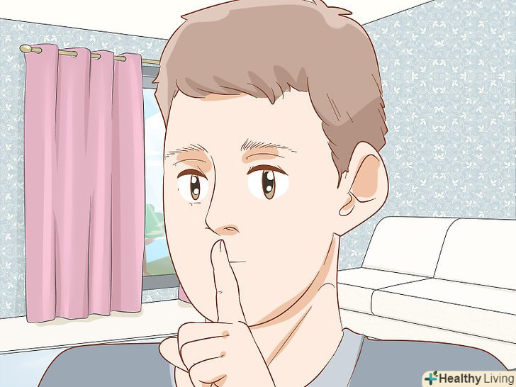 Дотримуйтесь тиші. сидячи в укритті, не видавайте ніяких зайвих звуків. Постарайтеся не кашляти, не чхати, не прочищати горло і не робити нічого такого, що Вас виявить. Навіть занадто гучне шурхіт одягу може розкрити ваше місце розташування. [2]- Приглушіть шум дихання, відкривши рот і перейшовши на глибоке повільне дихання. Воно буде менш помітним, ніж нервова задишка і дихання через ніс. [3]