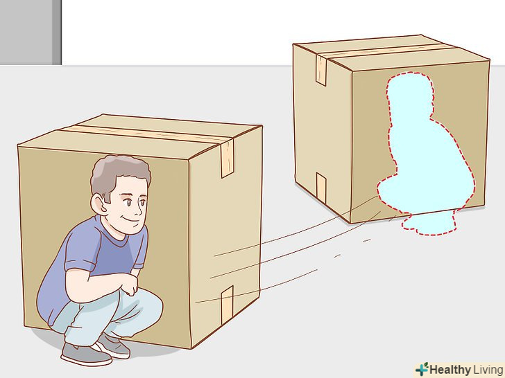 Заберіться в яке-небудь тісне місце. якщо ваші розміри досить малі, подивіться, чи немає поблизу ящика, ніші або затишної полиці, куди ви могли б поміститися. У деяких будівель бувають досить непримітні маленькі ніші, тому можна розглянути і такий варіант укриття, якщо ви готові трохи потерпіти в тісноті. [9]- Іншими прикладами цікавих місць для хованок можуть бути ящики для зберігання речей, картонні коробки і білизняні кошики.
