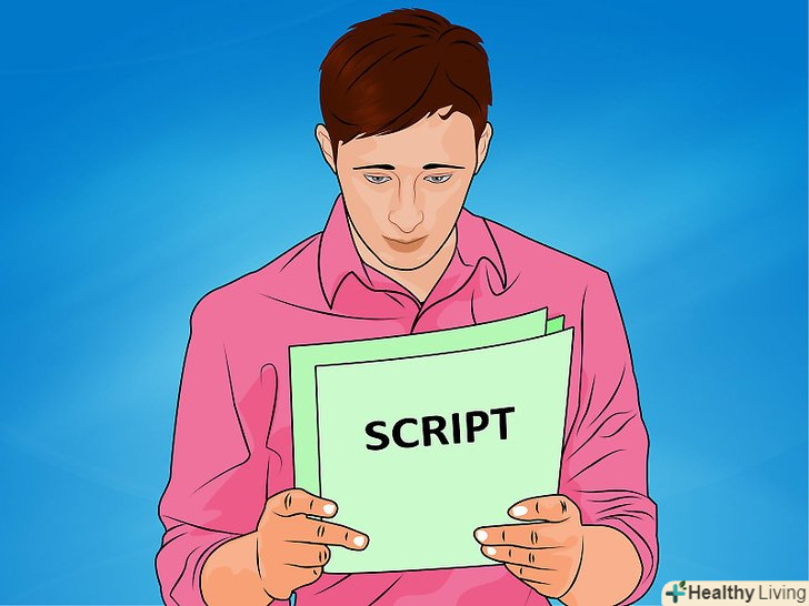 Читайте сценарії інших людей.незважаючи на те, що спочатку ви самі будете писати собі сценарії, можливо, в майбутньому вам доведеться працювати зі сценаріями інших людей. Читання сценаріїв, написаних іншими людьми, це відмінний спосіб попрактикуватися втілювати в життя історії інших. Коли ви читаєте хтось сценарій, постарайтеся подумати про деталі того, як би ви знімали кожну сцену.[3]- Наприклад, якщо в даному епізоді між двома людьми виникає сварка, як би ви їх розташували? Які б точки зйомки ви використовували? Яке освітлення ви б використовували? Які звуки будуть на задньому плані?