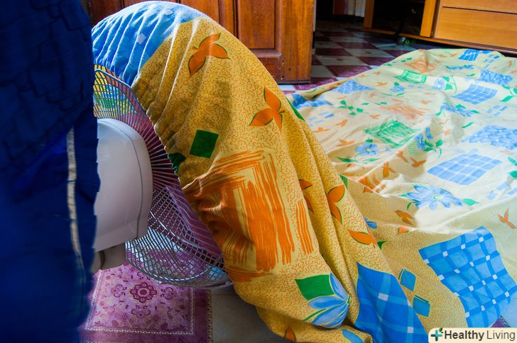 Закріпіть інший кінець простирадла. Візьміть простирадло, натягнуту на вентилятор, за інший кінець і поставте на неї високий, важкий предмет.