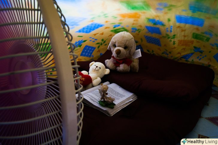 Знайдіть великий знімний вентилятор. Маленький вентилятор, який ставитися на стіл, не підійде. Потім вам потрібно знайти відповідне простирадло - з гумкою на кінцях, яка одягається на матрац. Нарешті, вам знадобиться високий, важкий предмет, такий як стілець або невеликий стіл.- Якщо ви плануєте щось розмістити у вашій фортеці, вам, можливо, знадобиться трохи речей як прес-пап'є, щоб утримувати легкі предмети.