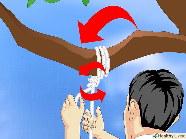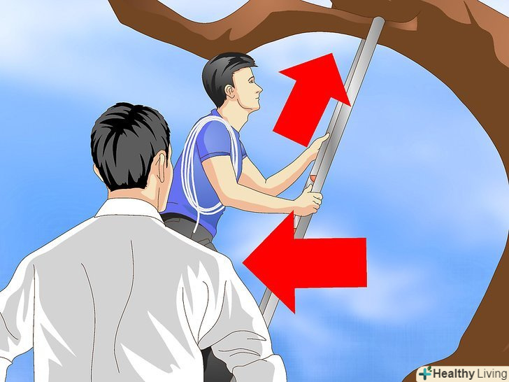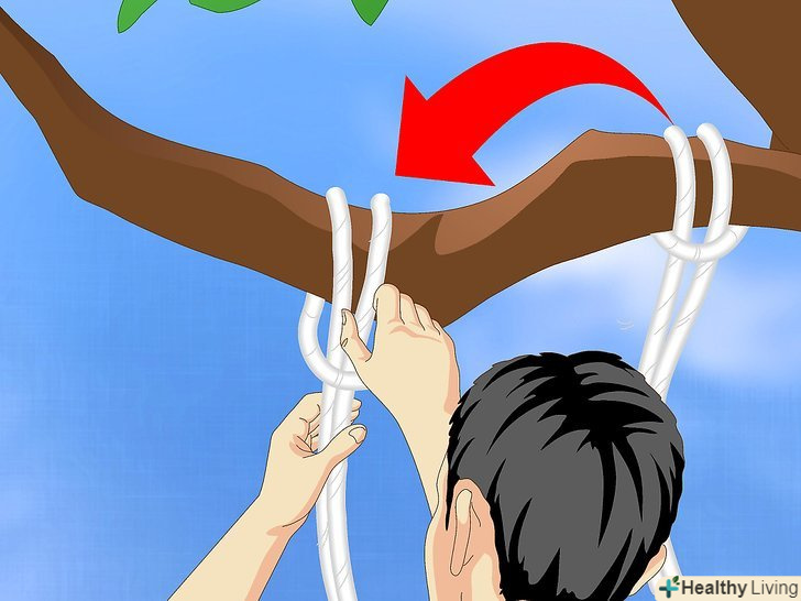 Підніміться з мотузкою наверх обраного дерева. корисно буде мати когось на підстраховці внизу, щоб, в разі падіння мотузки або вас, він зміг зловити.