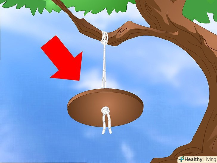 Протягніть мотузку через отвір в колі і зав'яжіть подвійний вузол під ним і переконатися, що він знаходиться на рівні вашого зростання.