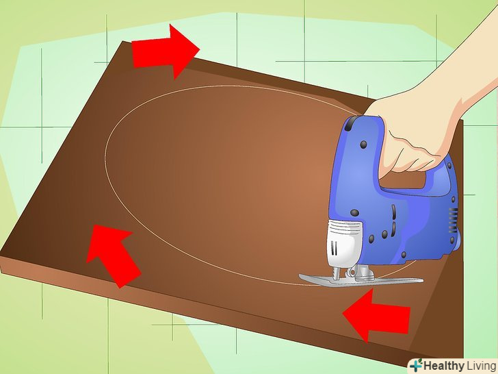 Виріжте з дерев'яної пластини коло товщиною 1/2 дюйма (1,3 см) і діаметром 17 дюймів (44 см). (від центру 8,5 дюйма (22 см))