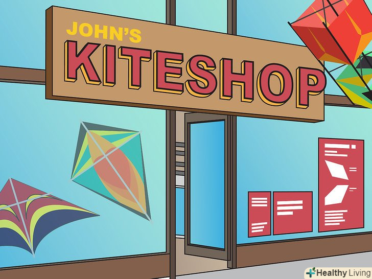 Відвідайте магазин дисконтних товарів. у магазині дисконтних товарів, крім усього іншого, можуть продаватися і повітряні змії найрізноманітніших видів. Якщо там вам не вдасться знайти те, що потрібно, тоді загляньте в спеціалізовані інтернет-магазини, в яких продають повітряних зміїв. [5]