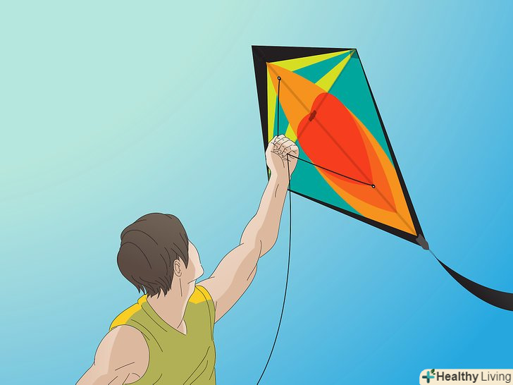 Встаньте спиною до вітру. Візьміть повітряного змія за вуздечку. Вуздечка - це йдуть від змія дві або три нитки і з'єднуються на керуючої нитки. Тримайте змія за вуздечку, поки він не зловить вітер. [10]