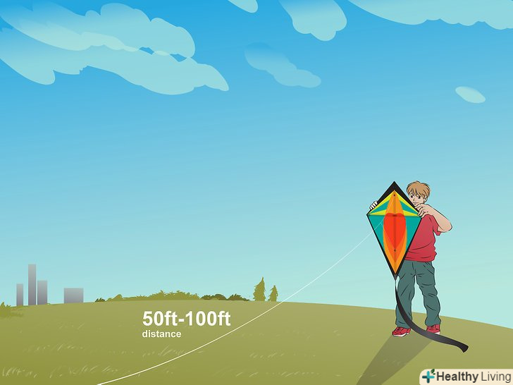Вибирайте для запуску змія просторі відкриті простори. відмінним місцем для запуску стануть парки, пляжі і поля. Намагайтеся не запускати змія поблизу з лініями електропередач, будівлями, дорогами, аеропортами і деревами. Крім того, коли запускаєте змія на двох нитках, не забувайте створювати дистанцію між собою та іншими людьми (якщо перебуваєте в парку), а також стежте за тим, щоб спостерігачі залишалися позаду вас. [7]- Запам'ятайте, чим більше простору навколо вас, тим далі ви зможете відпустити змія і тим вище він злетить.