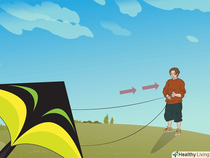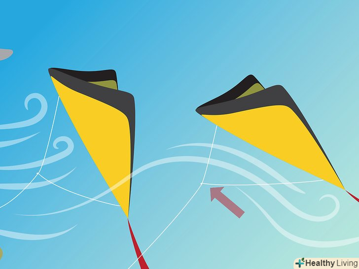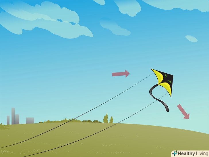 Обережно потягніть за нитки. це необхідно, щоб підняти змія вище. Пам'ятайте, що нитки управління Змієм не повинні провисати, вони повинні бути натягнутими, але податливими. Якщо повітряний змій почне знижуватися, трохи Скоротіть довжину ниток, щоб обережно потягнути змія на себе, поки він не почне знову підніматися. догори. [18]
