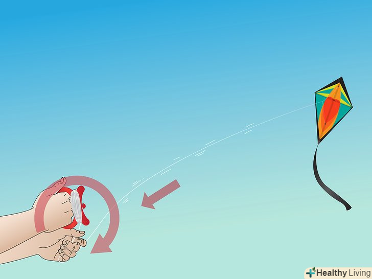 Скоротіть довжину нитки. зробіть це повільно, щоб посадити змія. У міру скорочення довжини нитки стежте за тим, щоб вона залишалася натягнутою, але податливою. Намотуючи нитку на котушку, йдіть у напрямку до змію до тих пір, поки він не приземлиться безпечним чином на землю. [14]- Якщо повітряний змій почне обертатися, то ви занадто сильно натягнули нитку. В такому випадку її необхідно трохи відпустити, щоб послабити натяг.