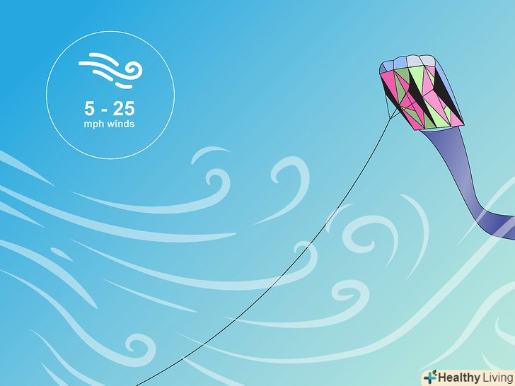 Запускайте змія при вітрі від 2 до 11 метрів в секунду. вітер такої швидкості підходить для більшості повітряних зміїв, проте ідеальною буде середина зазначеного інтервалу. Вам буде складно запустити змія при більш слабкому або сильному вітрі. Перевірте інформацію про погоду на своєму телефоні або в комп'ютері, щоб дізнатися швидкість вітру на конкретний день. [6]- Також оцінити силу вітру можна по верхівках дерев, кущів, а також по листю. Наприклад, якщо Вітер в змозі змітати листя з землі, умови для запуску змія можна вважати ідеальними.