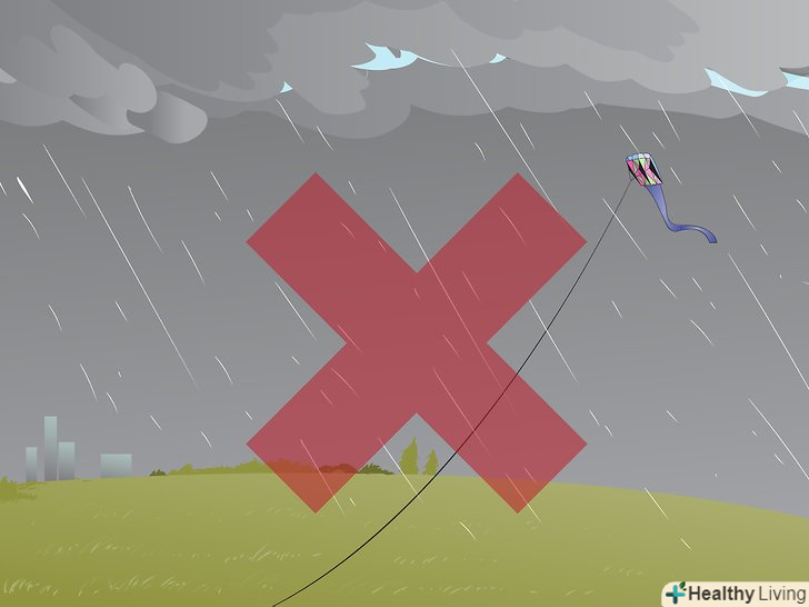Не запускайте змія в дощ і грозу. накопичене дощовими хмарами електрику може знайти вихід по мокрих нитках управління Змієм. Щоб уникнути удару блискавки, ніколи не запускайте змія в дощ або грозу. [8]