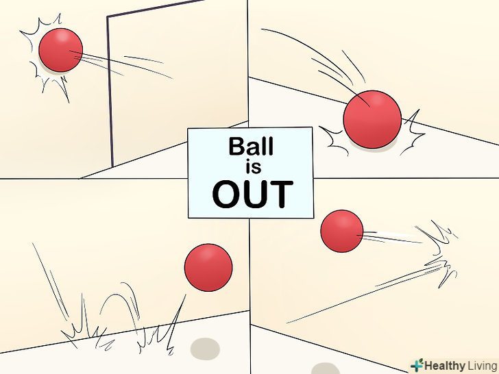 Продовжуйте гру до тих пір, поки м'яч не вийде в аут. М'яч виходить в аут, якщо на відскоку він потрапляє в Кордон ігрової зони або зовсім вилітає за її межі, якщо він вдаряється об стіну без удару об землю, якщо м'яч двічі відстрибує від землі до того, як по ньому б'є повертає гравець, або якщо гравець б'є по м'ячу, не давши йому відскочити від землі. [3]