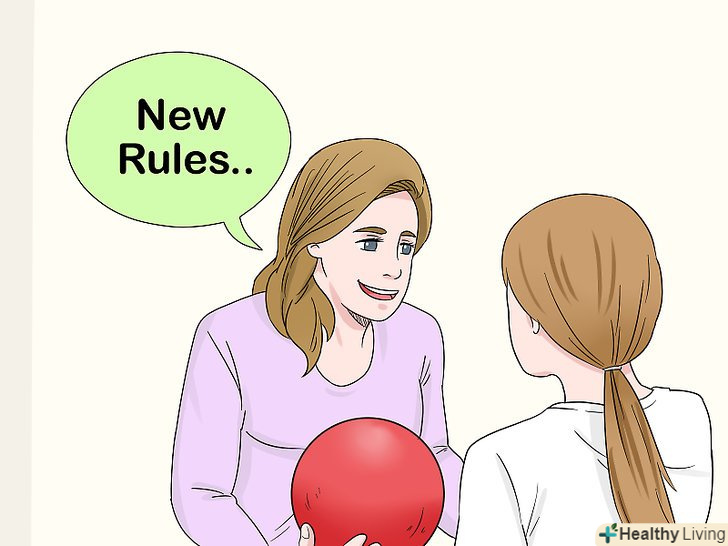 Створіть свої правила для кидків. досвідчені гравці можуть вводити бонусні очки або штрафні за такі речі, як прийом м'яча однією рукою, прийом м'яча на одній нозі, застосування лівої руки для кидка або прийому тощо. Гравця можна штрафувати за порушення правил або нагороджувати за виконання складних трюків.- Наприклад, можна ввести правило приймати м'яч тільки лівою рукою. Якщо опонент скористається правою рукою, то він штрафується зменшенням шансів або кидками в сідниці.