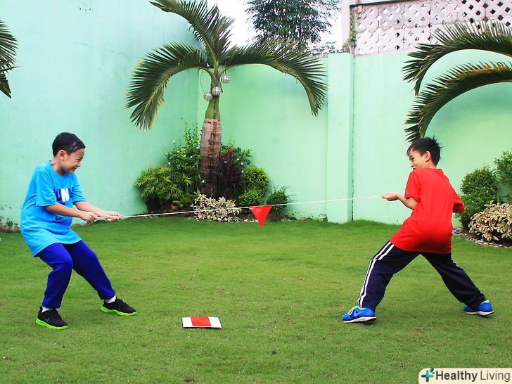 Накресліть лінію на землі в середині між двома гравцями. через цю лінію потрібно перетягнути суперника.