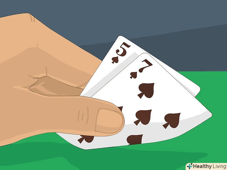Як підраховувати карти. зазвичай номінали карт підсумовуються, щоб отримати число від 0 до 9 на кожній стороні. Масть не має значення. Десятки і карти з картинками коштують 10 балів, тузи коштують 1 бал, карти з 2 по 9 дорівнюють своїй номінальній цінності. Коли карти складаються, десятки видаляються, залишаються одиниці. Іншими словами, карти з картинками коштують 0 балів, а не 10.- Наприклад, якщо вам випали при роздачі 7 і 5, то у вас буде в загальному 12 балів. В цьому випадку десятки прибираємо-залишається 2. У Баккара неможливо "перебрати карти", як в блекджек, хоча прикупи регулюються певним набором правил. [1]
