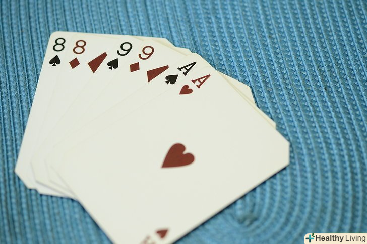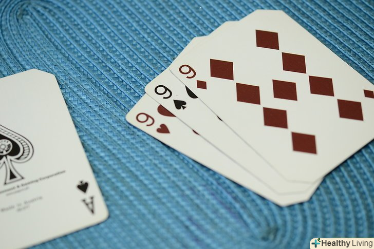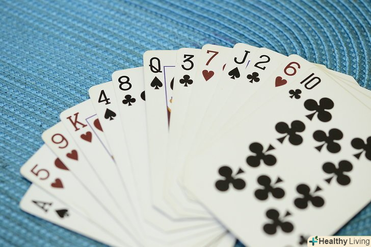 Розподіліть свої карти не від туза до короля, а в тому порядку, в якому будуть приходити вам карти. наприклад, якщо ви граєте втрьох-подумки порахуйте від туза до короля, звертаючи увагу на кожну 3-ю Карту:" Туз 2 3 4 5 6 7 8 9 10 валет дама Король туз 2 3 ... і так далі. Виділені карти-ті, що вам слід використовувати, інші будуть використовувати інші гравці. Можна легко помітити, що карти прийдуть вам наступним чином: Туз 4 7 10 Король 3 6 9 Дама 2 5 8 Валет – і знову туз.