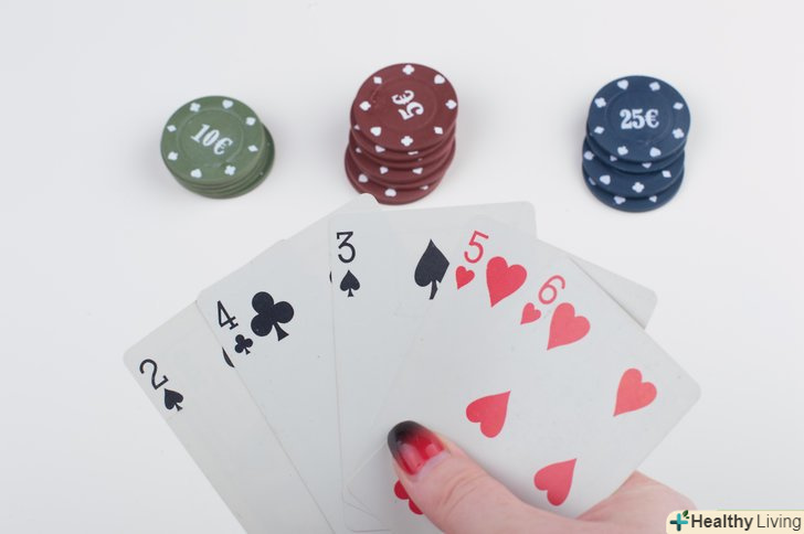 Запам'ятайте вищі комбінації карт.- 5: Флеш. Він складається з 5 карт однієї масті в будь-якій послідовності, наприклад 2, 6, 7, 9 і валет бубон.