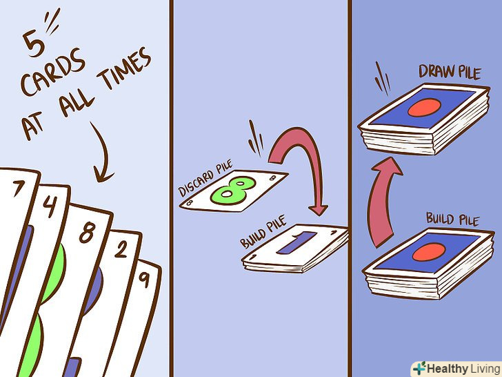 Знати, як можна виграти. в процесі гри основне завдання – позбутися від усіх карт на руках якомога швидше, утворюючи з них стопки. Перший, хто використовував всі свої карти-стає переможцем.- Можна будувати стратегії проти гравців, щоб вони не змогли так швидко позбутися від своїх карт як ви. Для того, щоб заблокувати ходи противникам, можна використовувати знання про їх картах, які знаходяться в стопці для скидання.
