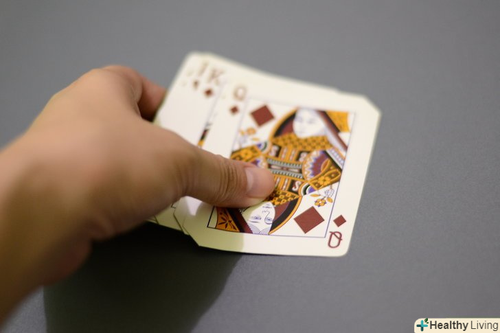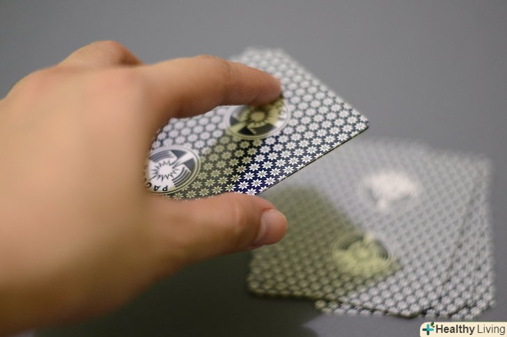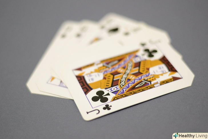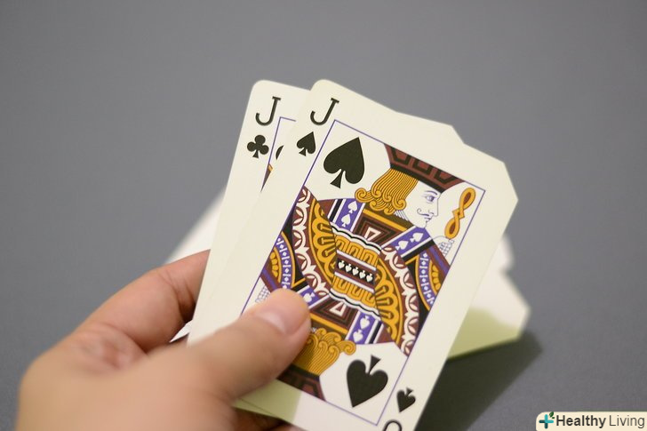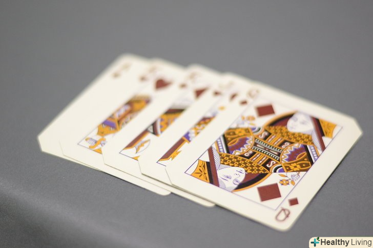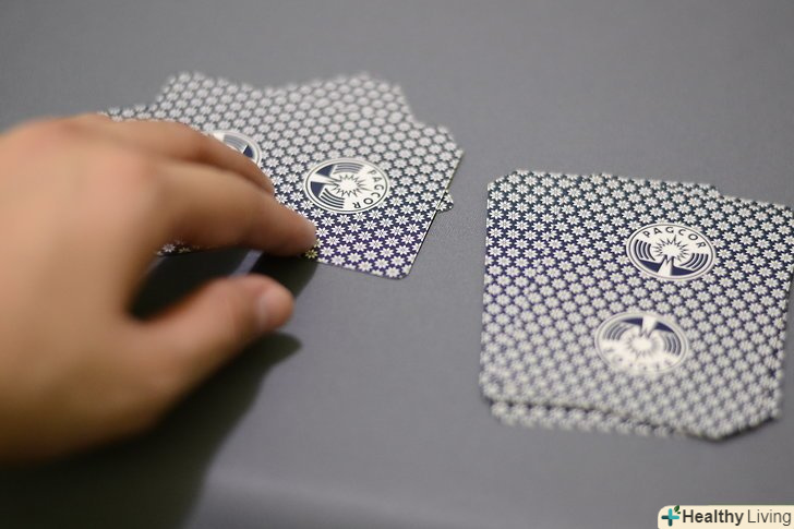 Відберіть з вашої стандартної колоди гральних карт карти, необхідні для гри в Euchre. у колоду для гри в Euchre входять всі дев'ятки, десятки, вальти, дами, королі і тузи. Крім того відкладіть п'ятірки, щоб вести рахунок, сімки для відстеження козиря, а потім всі інші від дев'яток до тузів.- Колода для гри в Euchre також містить 4 і 6 пік і 4 і 6 черв'яків, вони використовуються як картки для підрахунку очок. У Euchre грають до 10 очок, щоб вести підрахунок гравці закривають значки масті на картах. Для підрахунку перших п'яти очок одну карту покладіть горілиць, іншу на неї обличчям вниз. Зрушуйте верхню карту, відкриваючи по 1 значку масті на кожне очко. Для підрахунку останніх 5 очок, переверніть верхню карту і продовжуйте рахувати до кінця.