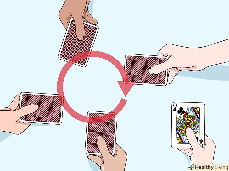 Роздайте всі карти гравцям. мета роздачі полягає в тому, щоб розподілити карти серед гравців якомога більш рівномірно. Рухаючись по колу, роздає повинен класти карту обличчям вниз перед кожним гравцем, продовжуючи до тих пір, поки всі карти не будуть на руках.- В результаті у деяких гравців може виявитися більше карт, ніж у інших, але це не страшно. [7]