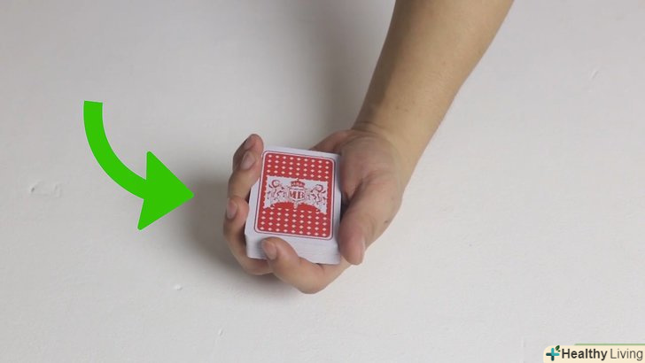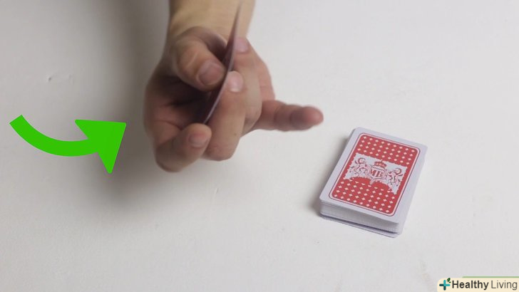 - Утримуйте її в зап'ясті. на початку Ви практично не повинні рухати рукою, щоб правильно повернути карту. Тренуючись, тримайтеся за руку і навчитеся викидати карти одним рухом зап'ястя.